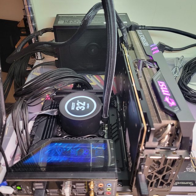 ▼用隨附的12VHPWR模組化線材連接MSI GEFORCE RTX 4090 GAMING X TRIO進行測試