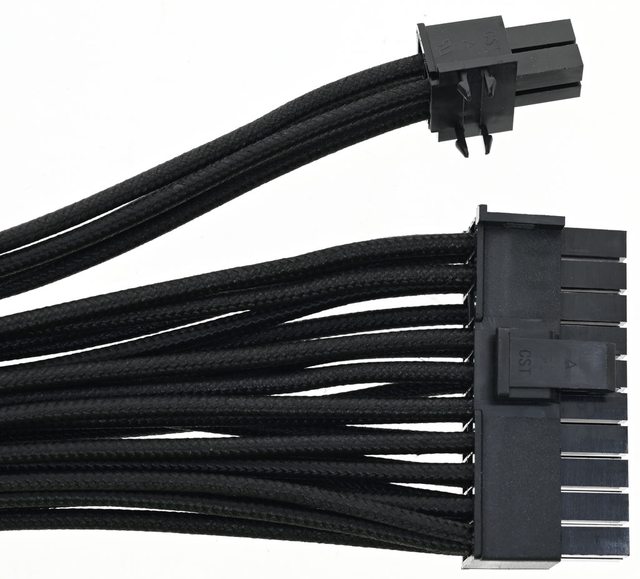 ▼2條處理器電源黑色傘繩編織線模組化線路,提供1個EPS 4+4P接頭及1個EPS 8P接頭,