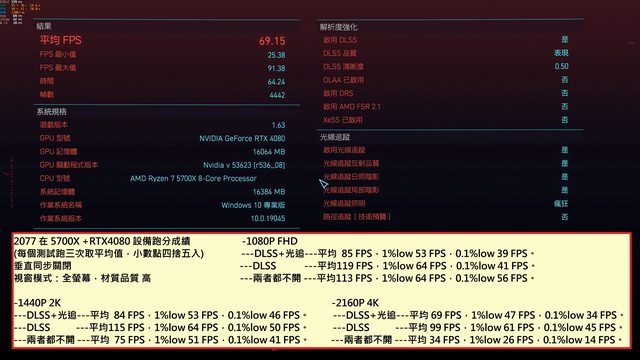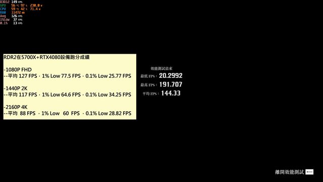 RDR2在5700X+RTX4080設備跑分成績