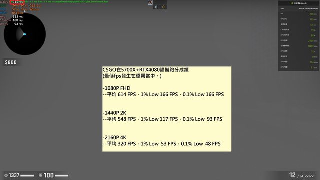 CSGO在5700X+RTX4080設備跑分成績