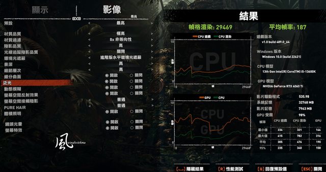 1080p => 幀格渲染:29469、平均幀率:187