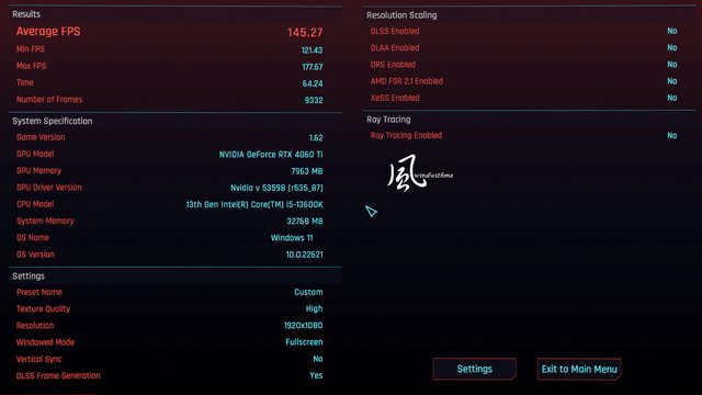1080p特效超高、幀數生成關閉、DLSS關閉 => 145 FPS