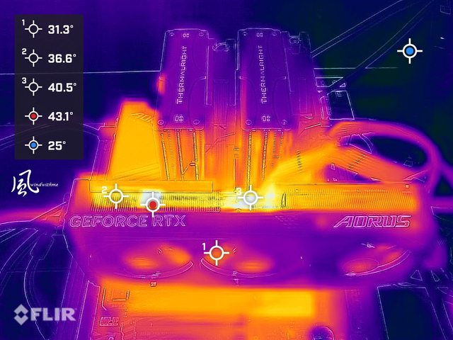 紅外線測溫最高點為43.1度,風扇約1550轉上下。