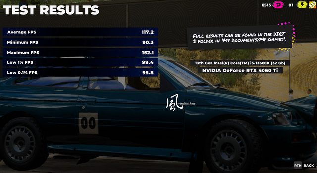 DIRT 5 大地長征5,畫質設定最高–1080p => Average FPS 117.2