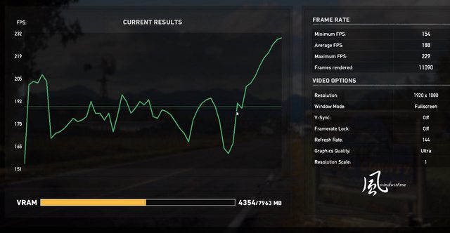 1080p FPS => 最低154、平均188、最高229