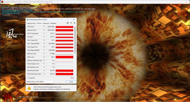 FurMark 1080p全速燒機時GPU核心功率140W,全機約為250W。