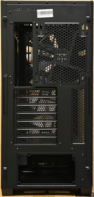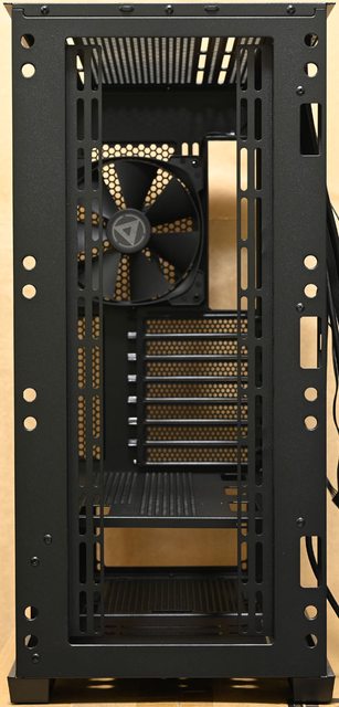▼機殼後方右上長條形固定孔可安裝1個120/140mm風扇。提供7個無支架標準擴充槽,均