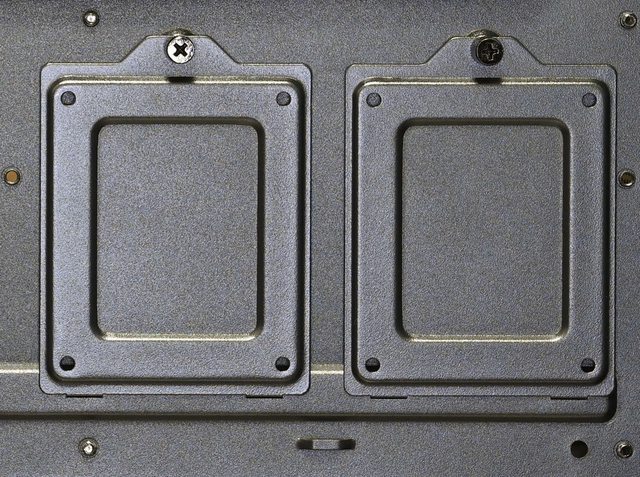 3.5吋硬碟。底板背面前方可安裝2個2.5吋SSD,底板背面右下方2個2.5吋固定架可安裝2