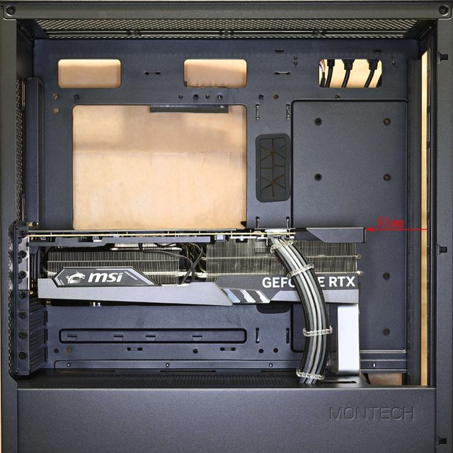 ▼安裝MSI GEFORCE RTX 4090 GAMING X TRIO(337×140×77mm)時,顯示卡頂端與機殼左