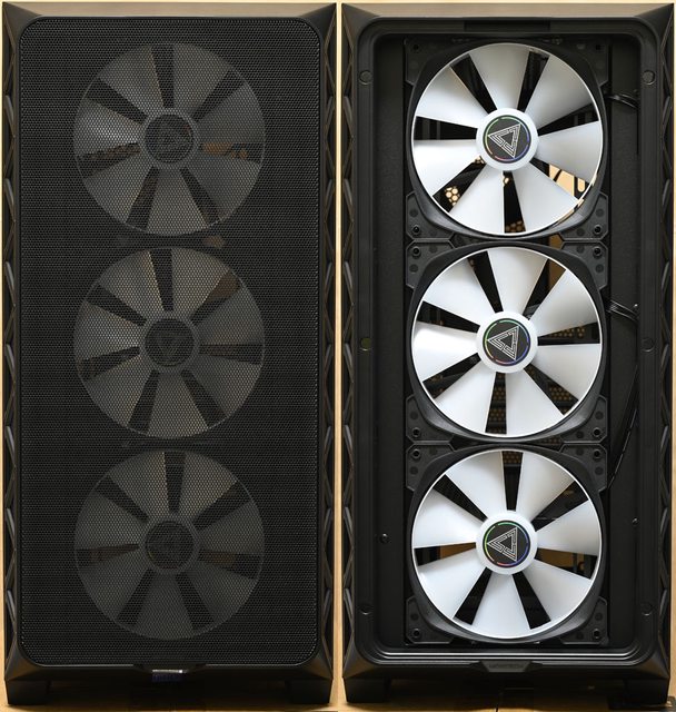 前方風扇安裝空間:3個120/140mm(預裝3個HP140 140mm ARGB PWM風扇)