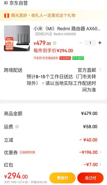 紅米AX6000 折後台幣1275
