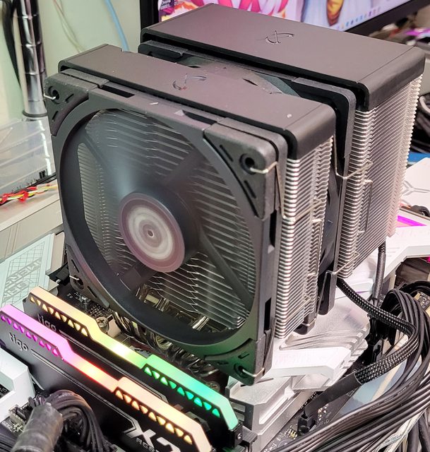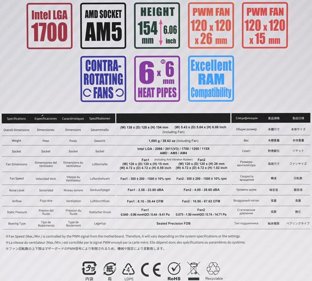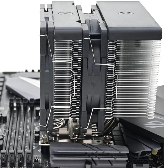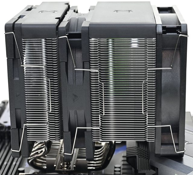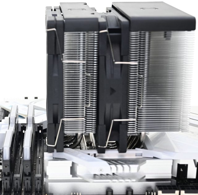 ●高度154mm雙12公分風扇雙塔CPU散熱器,採向後向上偏置設計,於特定區域散熱鰭片裁