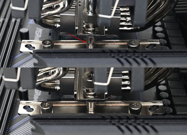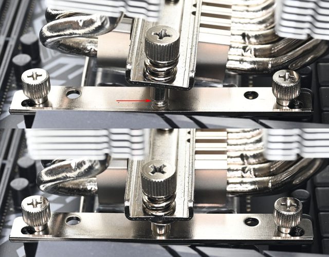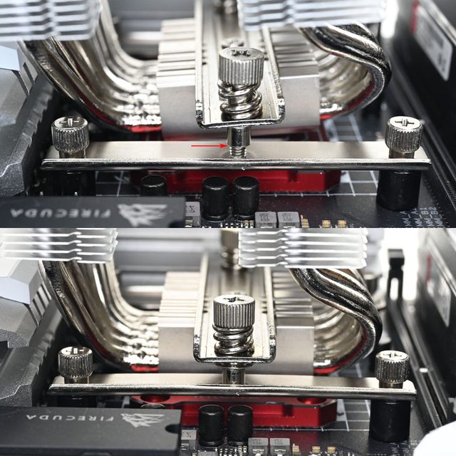 ▼壓板中間用1個螺絲固定在散熱器底座頂部