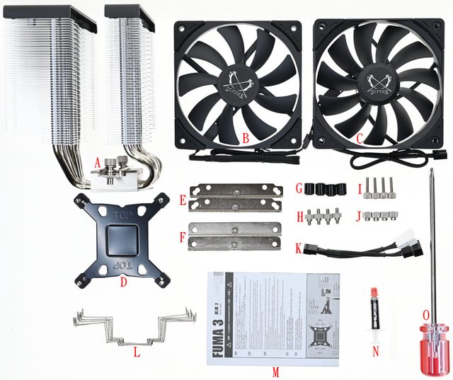 扣(L)、安裝說明書(M)、散熱膏(N)、螺絲起子(O)