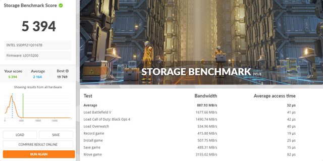 ▼Intel Optane SSD DC P5800X 1.6TB的3DMARK STORAGE BENCHMARK測試成績