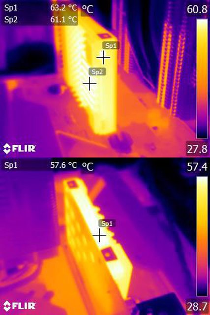 ▼附近沒有氣流流動的Intel Optane SSD DC P5800X 1.6TB進行連續寫入測試的紅外線熱