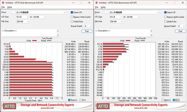 IOPS讀取測試1,561K超過規格標示1,500K,寫入測試1,570K超過規格標示1,500K。連續寫
