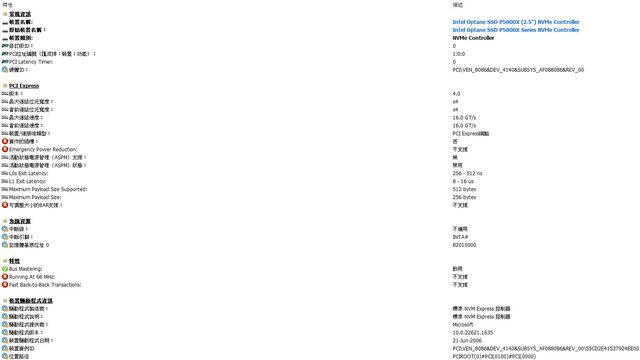 ▼匯流排硬體資訊內容,Intel Optane SSD DC P5800X 1.6TB以PCIe 4.0 x4連接,連接