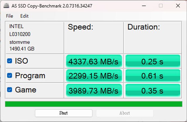 ▼Intel Optane SSD DC P5800X 1.6TB的AS SSD Copy-Benchmark傳輸速度測試