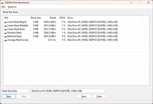 ▼Intel Optane SSD DC P5800X 1.6TB的AIDA64 Disk Benchmark讀取測試