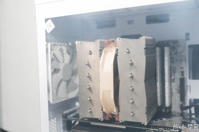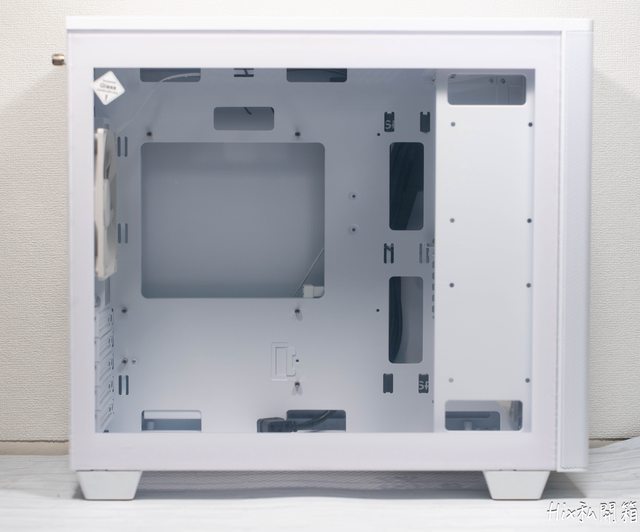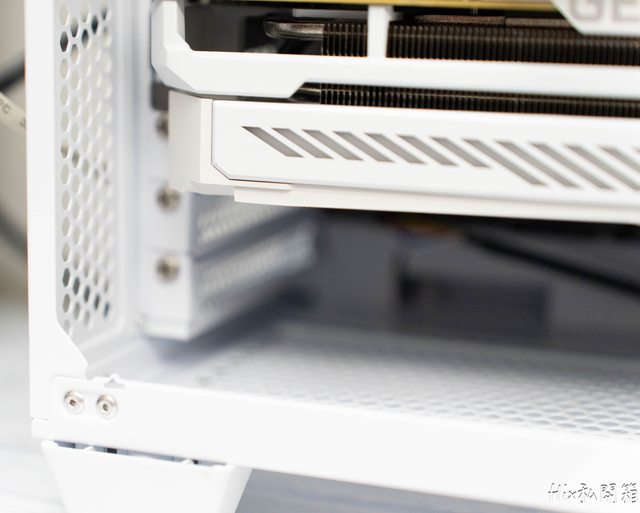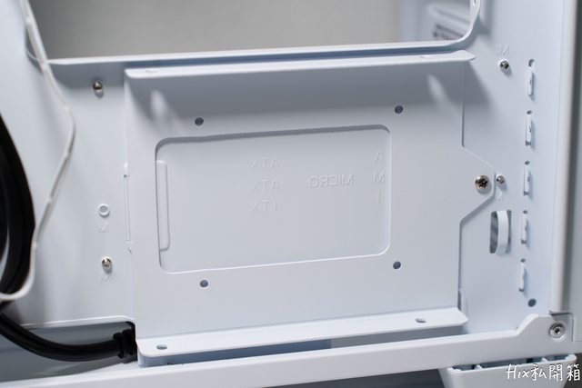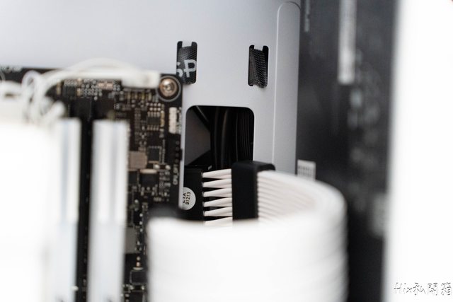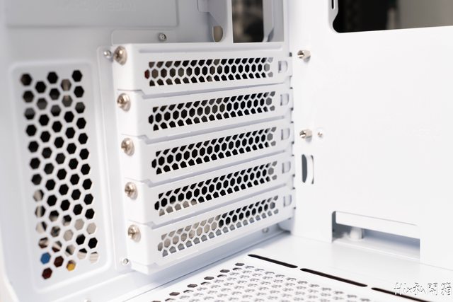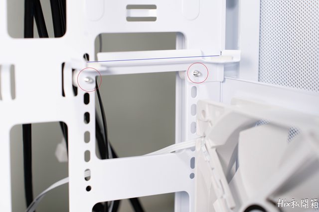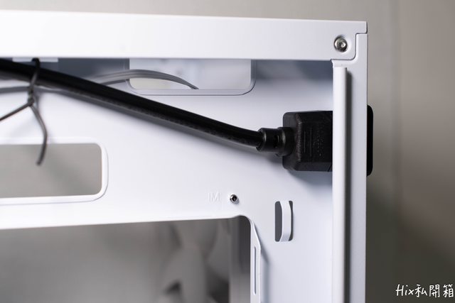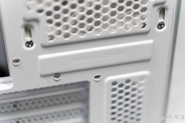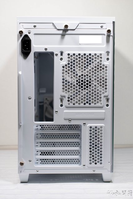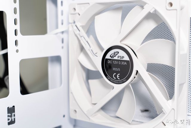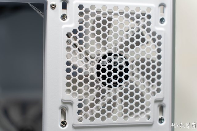 後置風扇,這邊可以觀察到他白色機殼螺絲幾乎都是以銀色為搭配