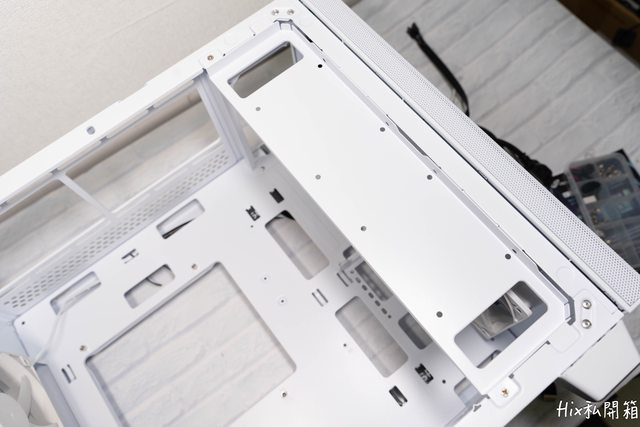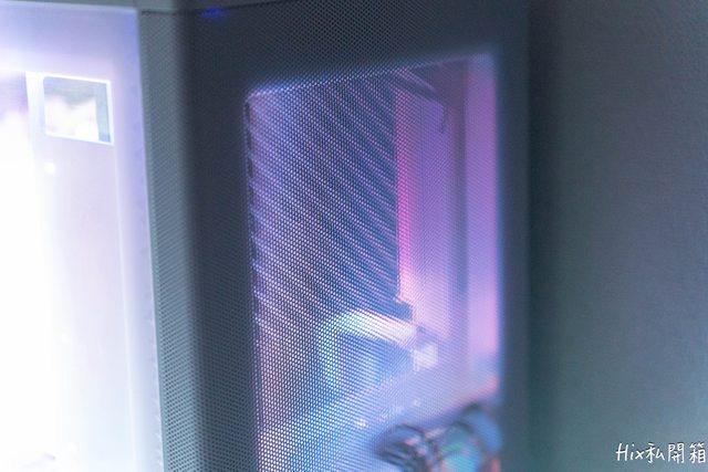 從洞洞網看進去可隱約看到一個內建風扇以及PSU放置處(風扇上方)