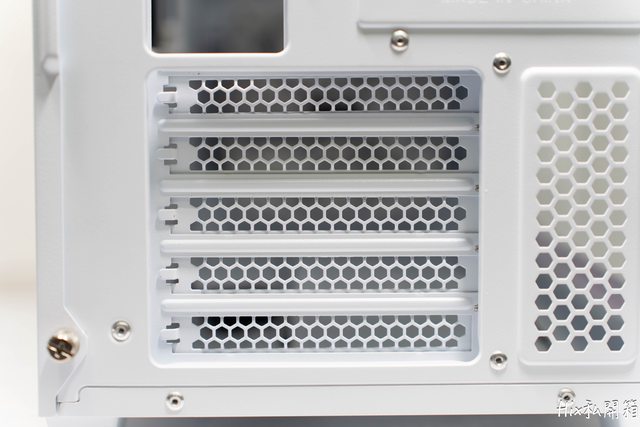 機殼後端帶一個12CM風扇位,以及5個PCI擋板