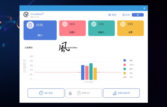 7600X總體得分1938 / 生產率1835 / 創造性2185 / 反應能力 1592