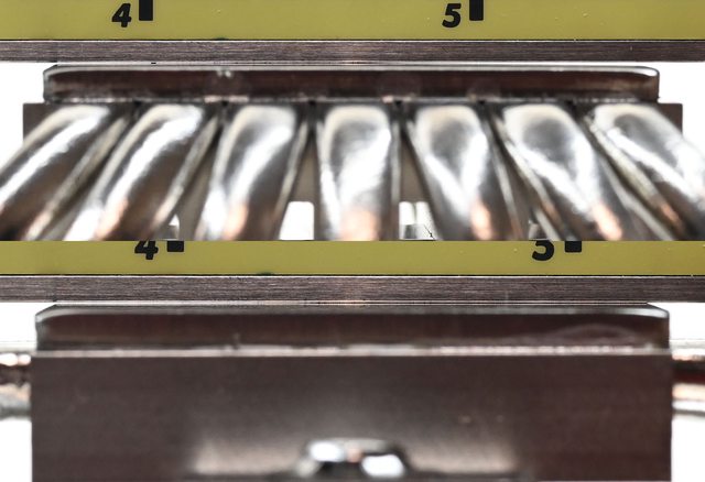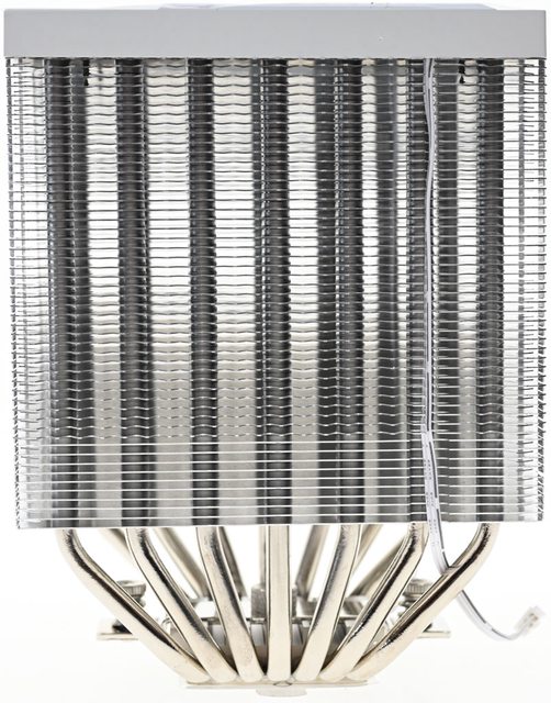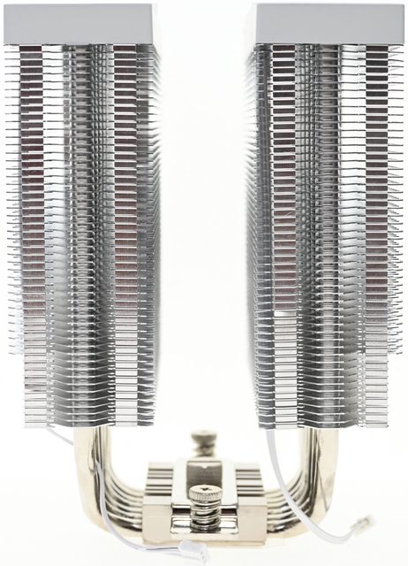 ▼散熱器本體採雙塔設計,底座兩邊各伸出7支直徑6mm熱導管,並在熱導管上安裝51片鰭