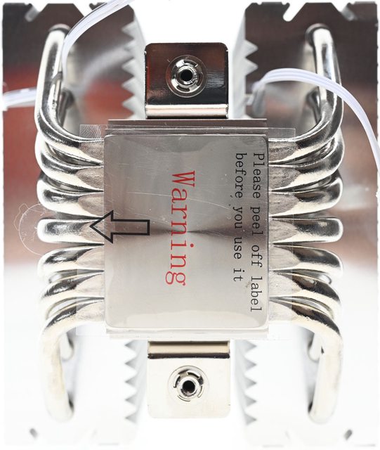 ▼散熱器底座的處理器接觸面有一張保護貼,上面用英文標示”警告,使用前請撕除保護