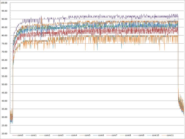 ▼高負載30分鐘CORE TEMP溫度記錄圖