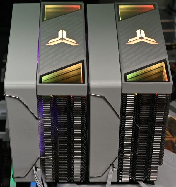 同步帶動雙塔散熱氣流。裝飾蓋及前塔風扇具備ARGB LED及無限反射鏡,支援5V 3pin