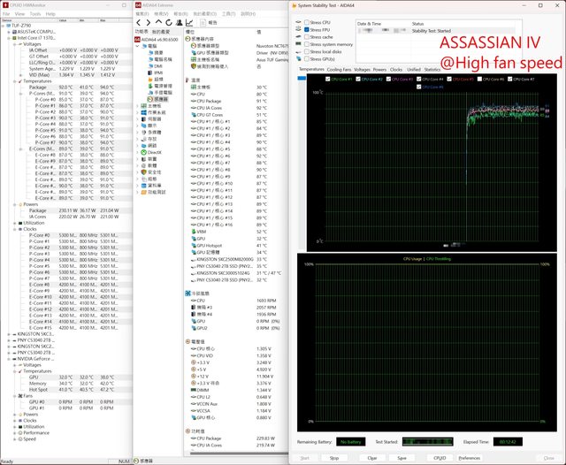 測試分為AK620、阿薩辛4 靜音模式、阿薩辛4 性能模式等3組,每組各測試2次單烤FPU