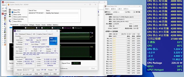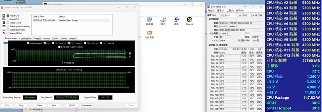 CPU TEST 最高溫度 70-75 時脈 P core 5.3G E Core 4.2G