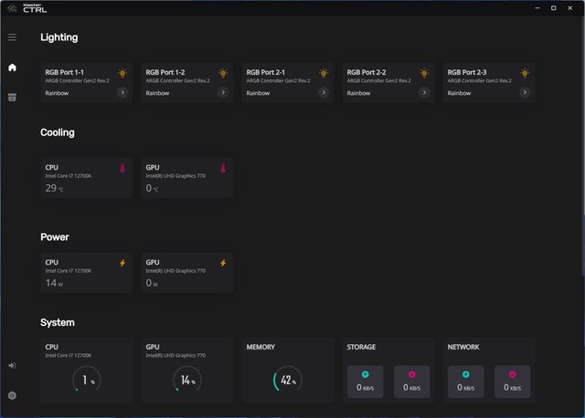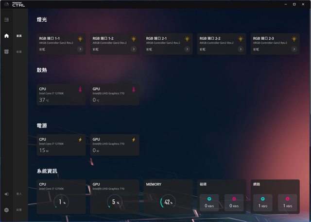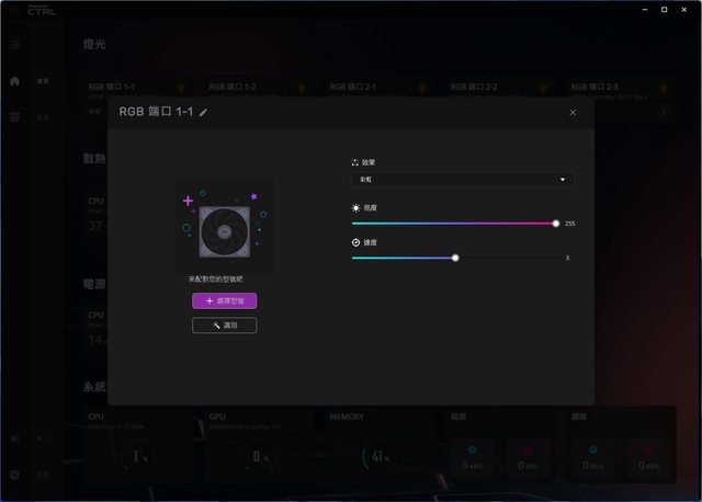 有Atmos水冷,所以只有燈效部分有小箭頭可以進行設置,其餘溫度、電源及系統資訊等