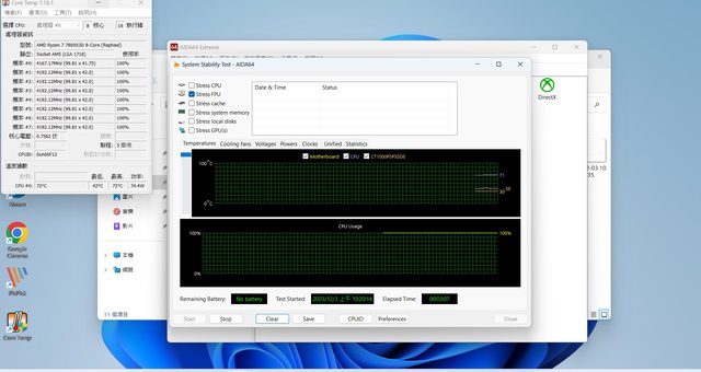 FPU 測試4.2G溫度72度功耗72W 比 i7K 涼爽很多