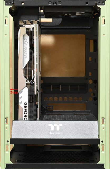 ,顯示卡前端與機殼底部距離74mm,顯示卡頂端與機殼正面強化玻璃視窗距離75mm