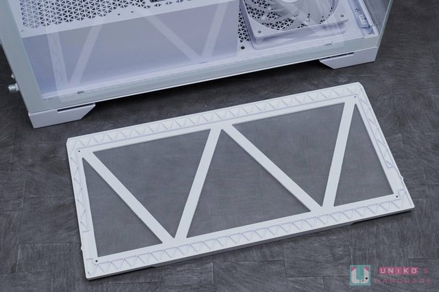 機殼上蓋與正後方當然少不了三角 Mesh 網孔設計,除了視覺質感不錯外,也是作為上方與