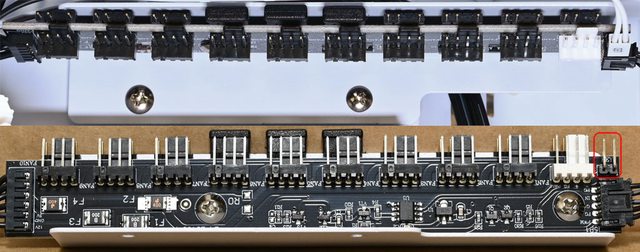 ○燈光風扇控制板提供10個3pin ARGB插針及10個風扇4pin插針,可從燈光按鈕切換內建