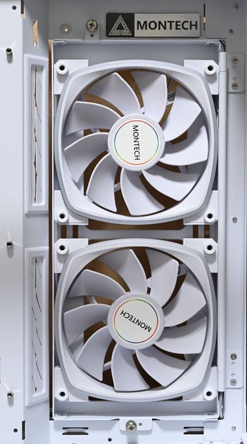 色款RX140 PWM反向風扇,底部預裝3個白色款RX120 PWM反向風扇,後方預裝1個白色款