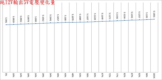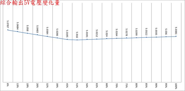 於綜合全負載輸出下12V/5V/3.3V各路低頻漣波分別為21.6mV/17.6mV/20.8mV;於純12V全