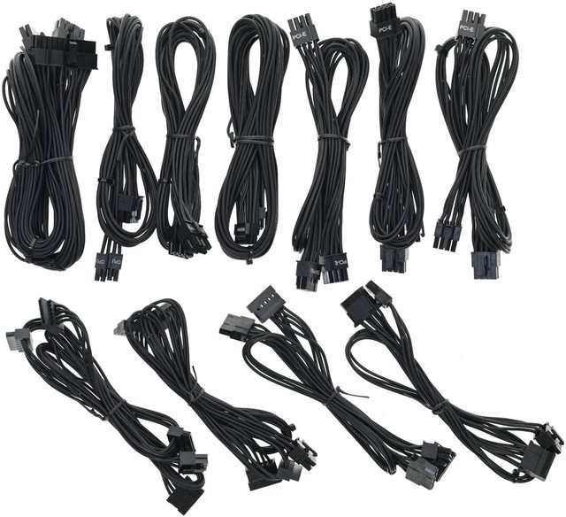 ▼3條顯示卡電源黑色模組化線路,提供6個PCIE 6+2P接頭,至第一個接頭線路長度65公