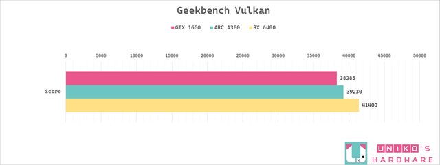 再來是 Geekbench,OpenCL 性能 GTX 1650 具備優勢,Vulkan 則是 RX 6400 領先,而 AR