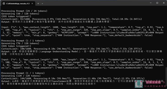 筆者使用 KoboldCpp V1.5 載入 Taiwan-LLM-7B-v2.1-chat-Q4_K_S.gguf 模型進行測