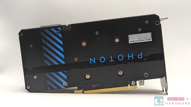 正面可以看到整體採黑色雙風扇散熱器,背面也有一塊黑色的金屬強化背板,已經是接近中