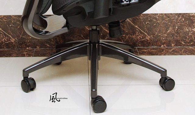 鋁合金五爪盤搭配直徑6公分靜音PU滾輪,外觀烤漆同時兼顧質感與耐用度。