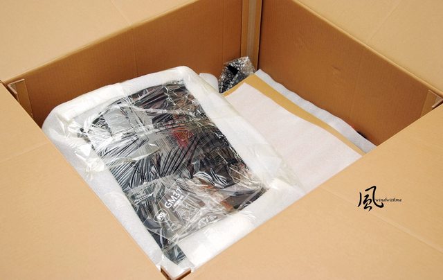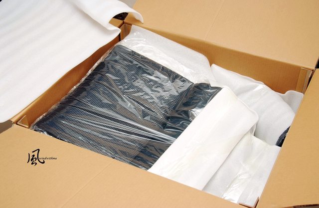 拆箱後看到內部採用大量泡棉搭配厚塑膠袋做保護,確保運送過程中零件不易因擠壓而受