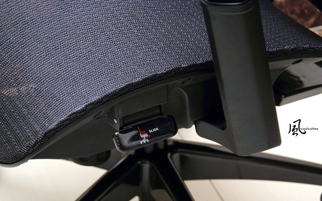 線控版調整設計在坐墊左右兩側,照片中為坐墊深度調整,算是很實用的設計。