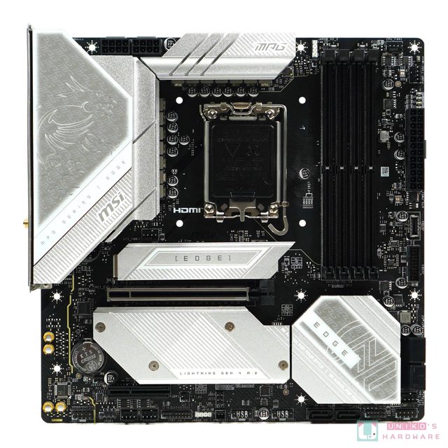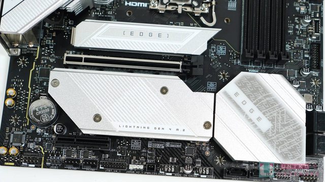 從實物看起來,B760M EDGE TI WIFI 有點像是銀白色版本的 B760M MORTAR II WIFI,視覺