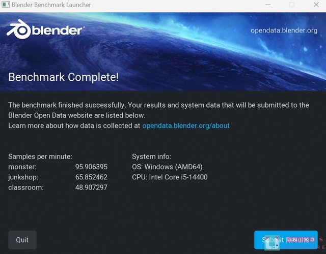 使用 Blender 官網上的 benchmark,有 3 個 3D 渲染測試場景 Monster、Junkshop、Clas